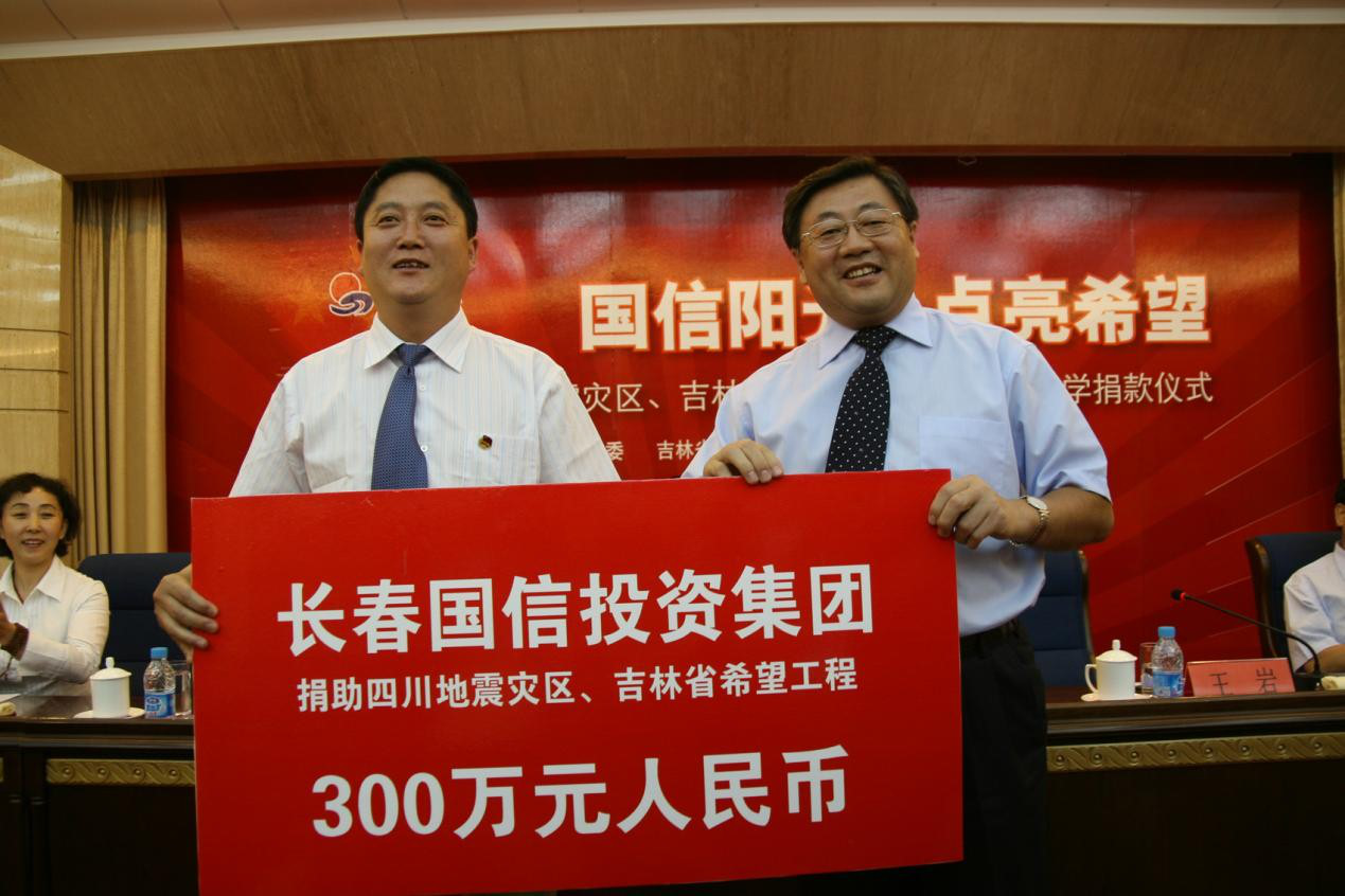 注:线上最火买球站集团捐助四川地震灾区、吉林省希望工程仪式留影。