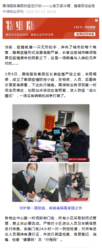 【中指物业研究】线上最火买球站服务集团抗疫在行动——心系万家冷暖,情牵百姓安危